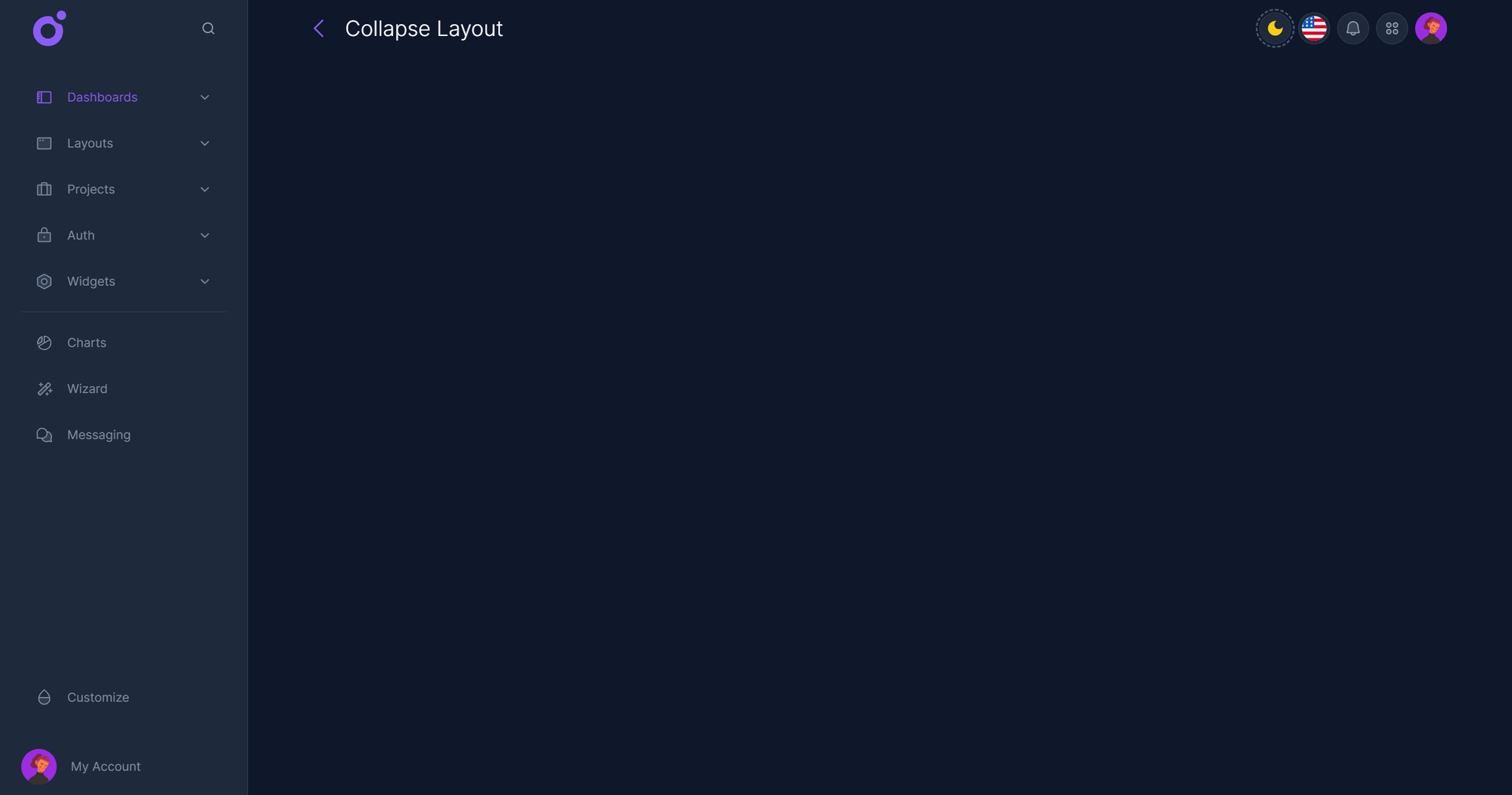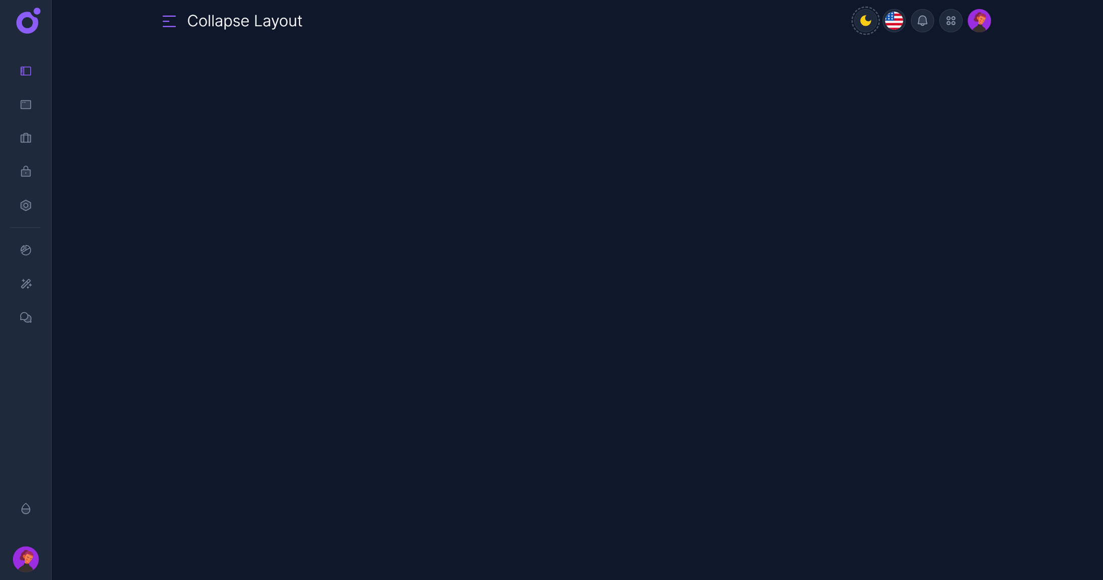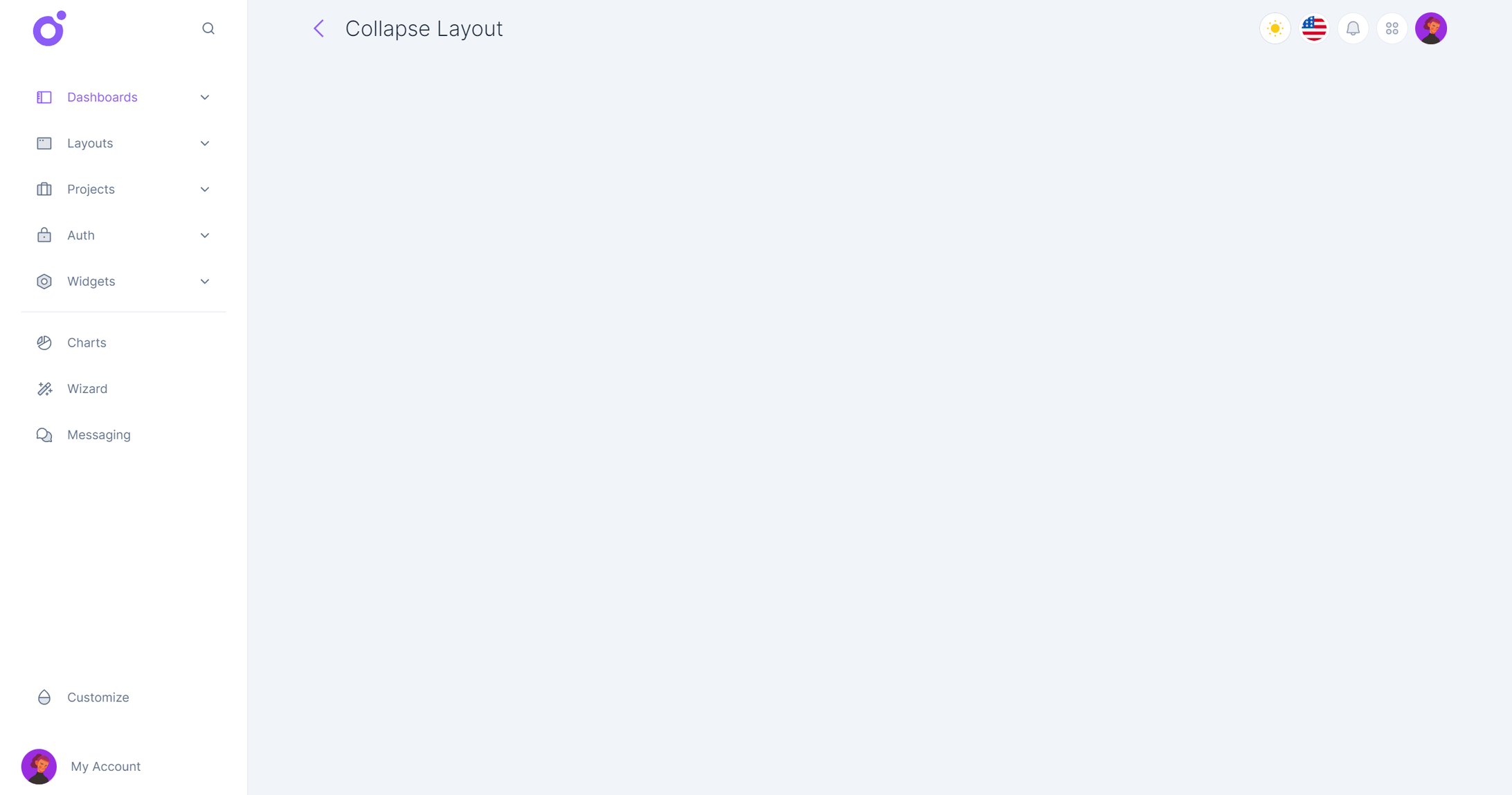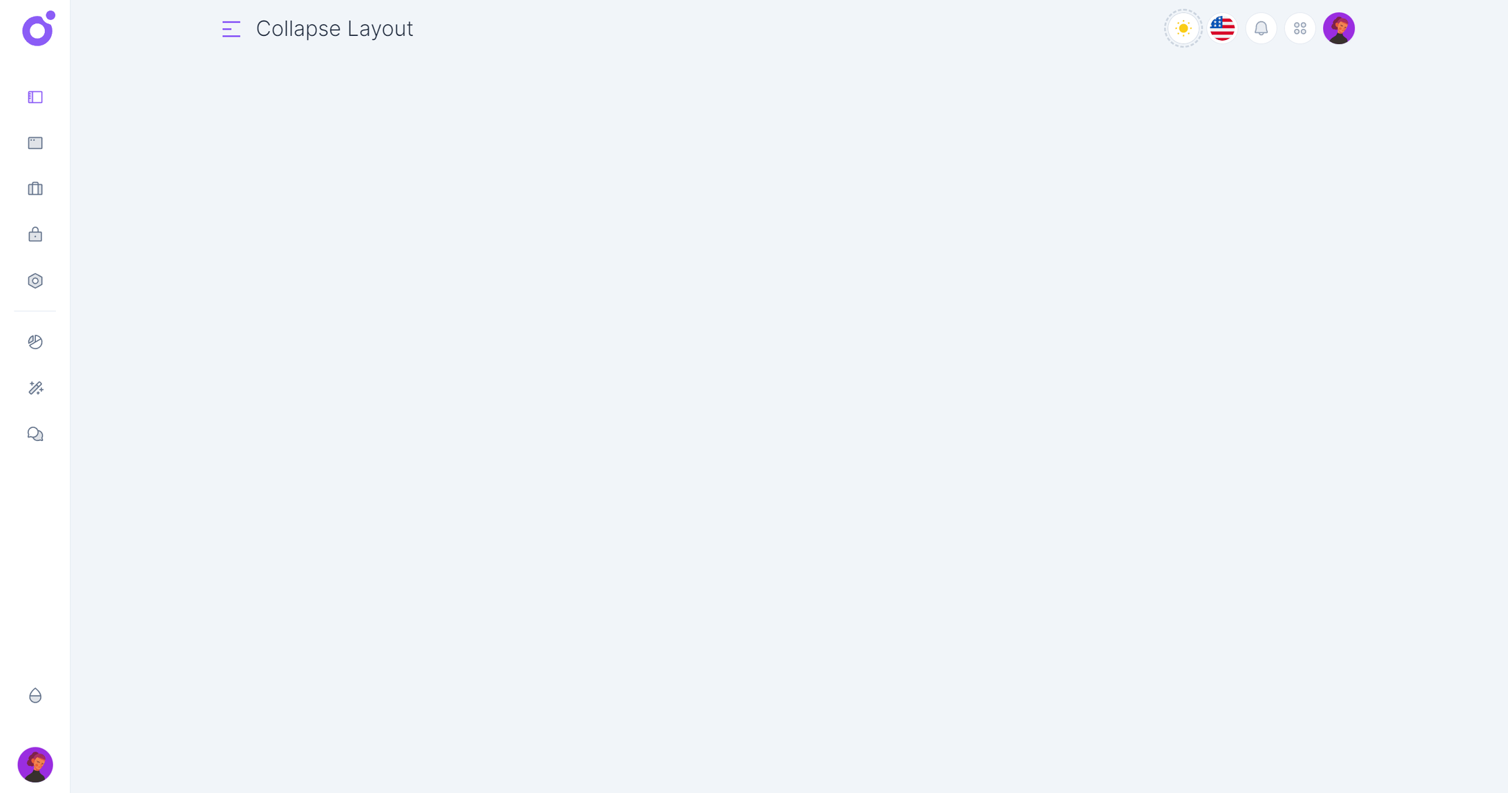 The collapse layout focuses on a single sidebar with a list of menu links, ideal for smaller apps if you don't have enough content or pages to use a more complex layout like the <TairoSidebarLayout> .