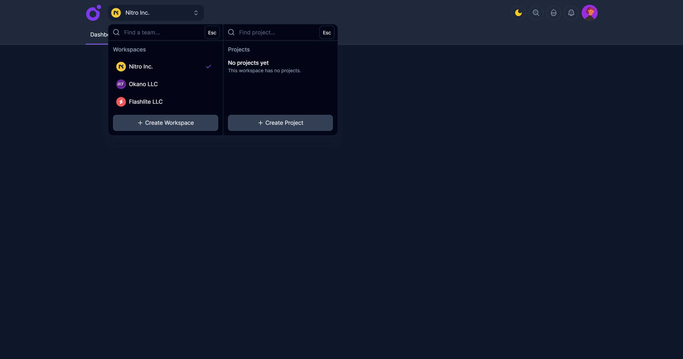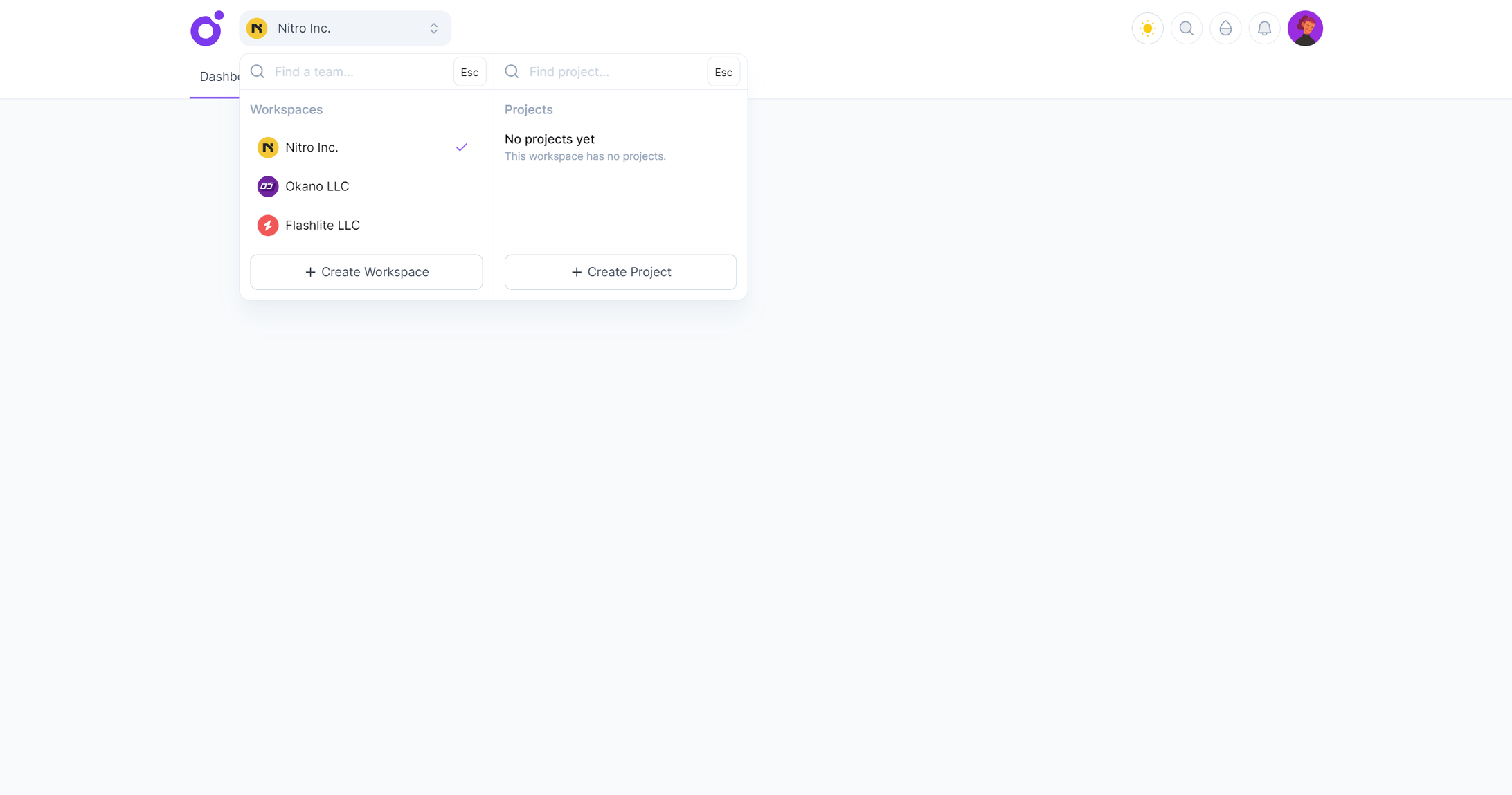 The Topnav navigation provides a slot for the header as well as a toolbar. In the demo example, we've added a workspace selection dropdown to the header.
